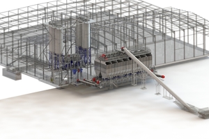 Die zweite Kompakt-Betonmischanlage Elkomix-60 Quick Master, mit deren Installation in Kottweiler begonnen wurde, wurde so konzipiert, dass sie sich vollständig an den Einsatzort des Kunden anpasst. Spezielle Materialien, die im bestehenden Gebäude gelagerten werden, gelangen über die Vorbeschickung in die vier Kammern der 8 x 10 m³ fassenden Zuschlagstoffbehälter. Die anderen vier Kammern befinden sich unterirdisch, sodass diese über einen Radlader ohne Rampe beschickt werden können. Die Mischanlage mit einem 1.500/1.000-Liter Elkon-Doppelwellenmischer ist mit drei 75 Tonnen verschraubten Zementsilos ausgestattet.