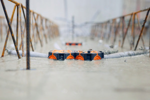 Der Deckel des Gehäuses lässt sich beispielsweise schon vor der Betonage öffnen, wodurch Kabel und Leitungen bequem eingezogen werden können. Der größte Mehrwert für das Betonwerk ist aber die Möglichkeit der Magnetbefestigung.