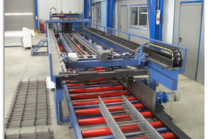 Die Zuführung der Längs- und Querdrähte erfolgt vollautomatisch durch zwei Flexiline-Rotorricht- und Schneidemaschinen mit extrem schnellem Drahtdurchmesserwechsel in ca. 3 s (patentiert).