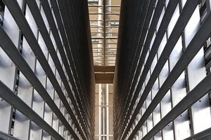 Die H.S. Anlagentechnik, Kerkrade/NL, lieferte die Regale mit 15 Kammern á 22 Etagen, Höhe 8,3 m und einer Brettkapazität von 5.940 Brettern 1400 x 1100 mm. Jedes Brett erlaubt eine Belastung von max. 640 kg. Die Ausführung erfolgte in Spezialverzinkung ZM300, eine Legierung von Zink, Magnesium und Aluminium als Erdbebenausführung mit zusätzlicher Verstrebung. Lt. Herstellerangabe liegen die Vorteile in der seitlichen Brettführung bis Kammerende, wobei das Kopfführung als C-Profil ausgeführt ist und Schwelle und Standprofil wie seit fast 50 Jahren eine Einheit bilden; dadurch sehr einfache Montage und Endnivellierung. Darüber hinaus ist keine zusätzliche Stabilisierungsstütze erforderlich.