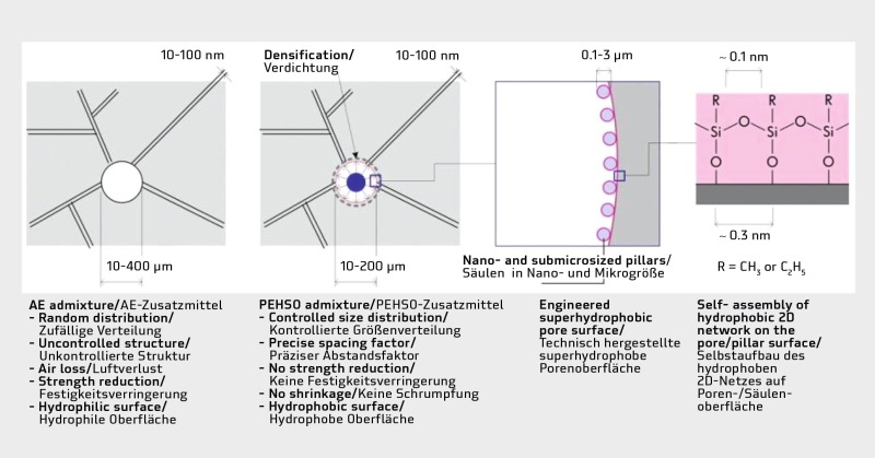 Hochduktiler Beton (strain-hardening cement-based composites – SHCC) kann eine gute Option für den Einsatz in kritischen Infrastrukturelementen sein, die eine längere Lebensdauer benötigen. SHCC kann jedoch, in Abhängigkeit der Zusammensetzung der Matrix und der Faseranteile, aufgrund von Frost-Tau-Angriffen eine relativ hohe Alterung aufweisen. Die Verwendung von hydrophoben oder superhydrophoben (HSH) Zusatzstoffen, die zur Herstellung von Luftporen dienen sollen, deren Größe und Verteilung angepasst werden kann, können die Leistung von SHCC verbessern.