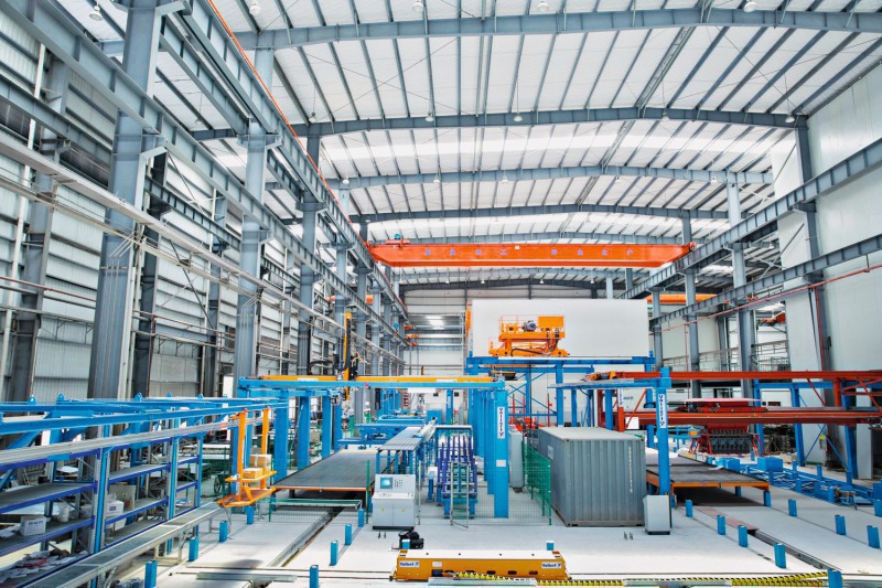Die Entscheidung für Vollert als Technologie- und Anlagenlieferant fiel ganz bewusst. „Auch wenn auf den ersten Blick die Investitionskosten höher sind als die asiatischer Anbieter im Markt; letztlich entscheiden die Anlagenproduktivität und die Rentabilitätszahlen. So produzieren wir im neuen Fertigteil-Produktionswerk in Shanghai stündlich bis zu 160 m² Wand-/Deckenfläche“, führt Hua Fan aus.