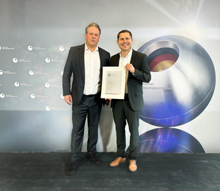 Björn van Deest und Maximilian Sülzle nahmen die Ehrung als Finalist in der Kategorie Materialgroßhandel beim 18. Deutschen Nachhaltigkeitspreis stellvertretend für die Sülzle Gruppe entgegen