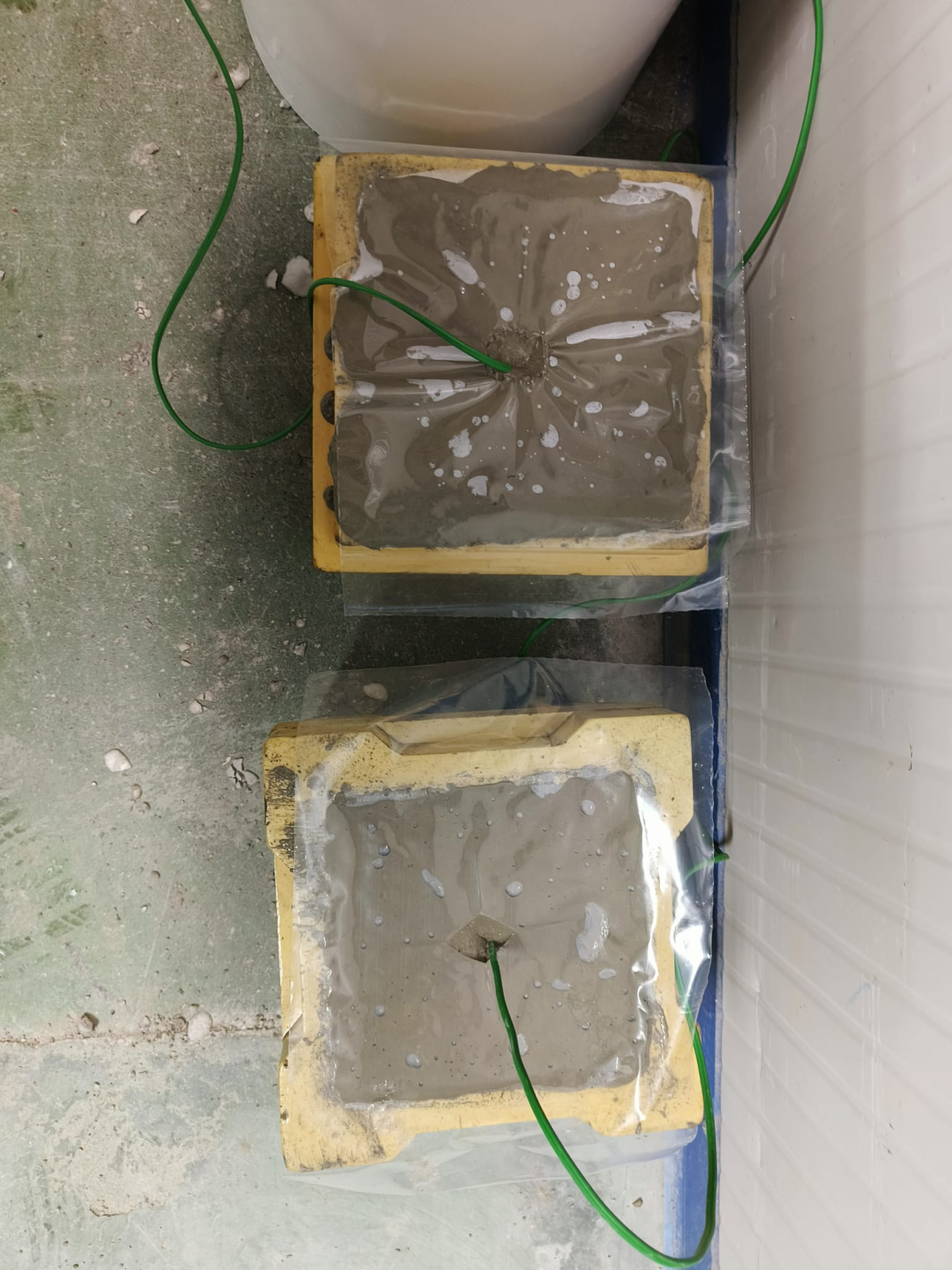 Additionally, the temperature evolution measured at both 10°C (Figure 3) and 20°C (Figure 4) curing, using 15 x 15 x 15 cm concrete cubes (Figure 5), confirms that the reaction of cement hydration can be significantly sped up by the new accelerating system.