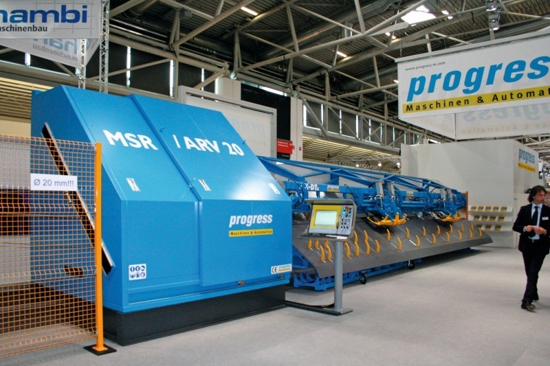 Among other products, Progress displayed the MSR/ARV 20 for the straightening, cutting and bending of reinforcing steel from coiled stock. This machine can process rebar in diameters of up to 20 mm. The machine on display was equipped with automatic rotor adjustment, a flying shears system and an automatic die change. A particular feature of this machine is its bending section, which enables the simultaneous bending of two wires in diameters of up to 16 mm.