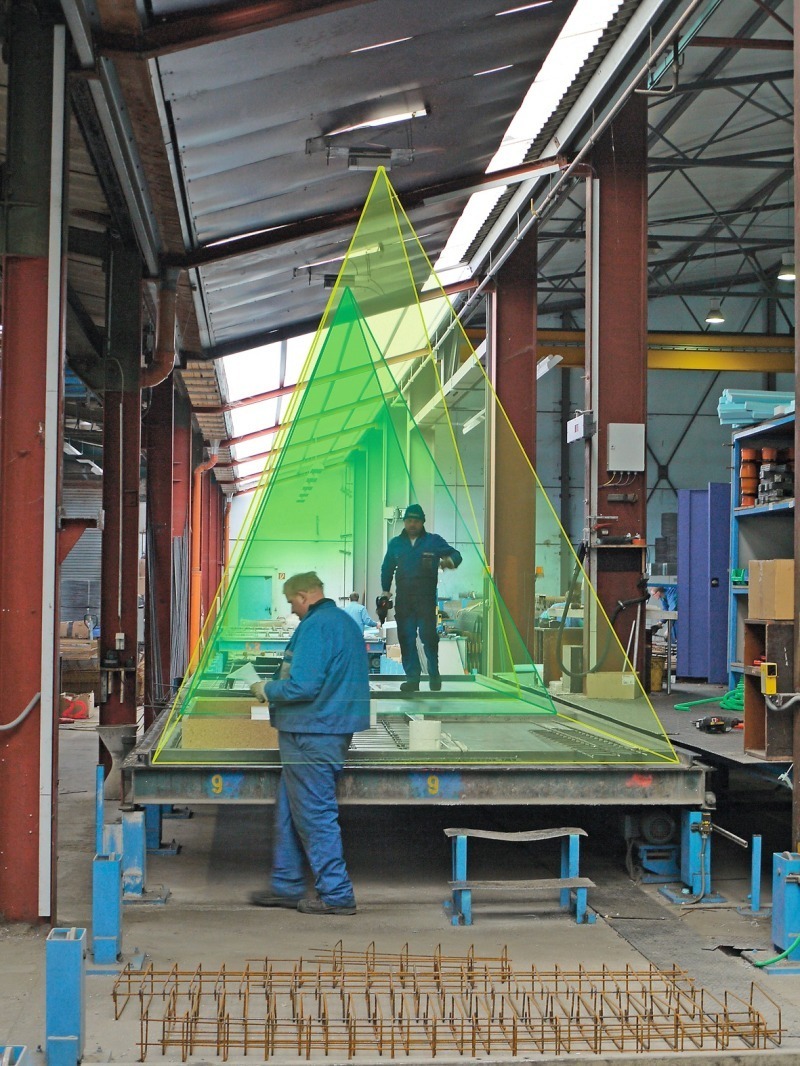 Laser projectors generate “optical templates” on the work surface that enable rapid and exact positioning of the various parts and that ensure the dimensional accuracy of the completed precast components.