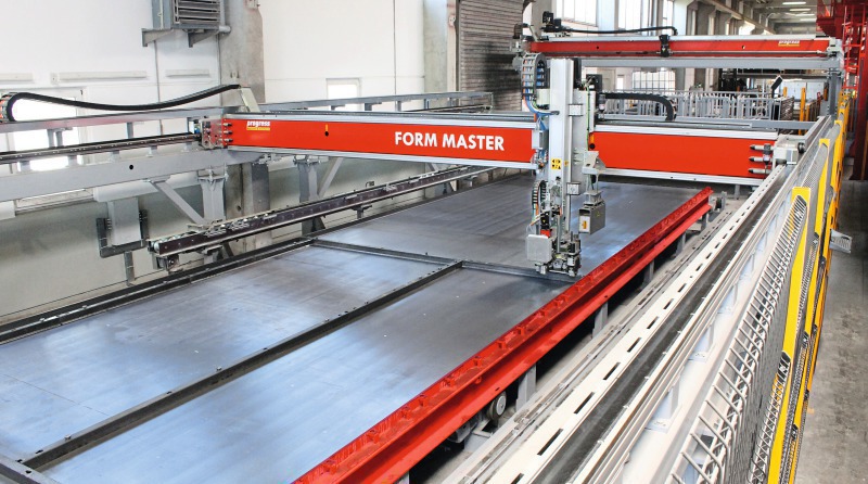 “The Form Master is without question one of the highlights of the entire plant,” says Plant Manager Werner Hörtreiter. “The special shuttering system is part of it. For us, it is a quantum leap.” The Infinity Line – as it is called by the Progress Group, which developed and obtained a patent for it – provides additional efficiency in the shuttering process. A systematically implemented combination of the shutters lengths allows all centimeter lengths to be achieved. This concept enables continuous shuttering without polystyrene elements and reduces the number of shutters required to a minimum. This not only simplifies the shuttering process and makes it more cost-efficient, but also improves the quality of the precast element: production without polystyrene elements enables manufacture of perfect external edges.