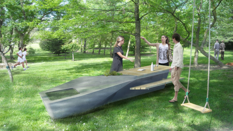 The city of Vienna, Austria, plans to install new barbecue furniture on the Danube Island, the popular recreational paradise. Department 45 of the city administration “Viennese Waterways,” the Austrian cement industry and the Association of the Austrian Concrete and Precast Plants had invited students to submit entries to the Concrete Design Award 2013 “Barbecue Edition 25.” After the Facebook users had chosen their favorites, a prestigious jury, chaired by Univ. Prof. Mag. arch. Paolo Piva, Institute for Industrial Design at the University for Applied Arts, chose the winners of the first three prizes.