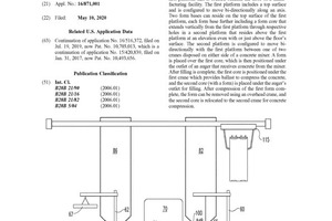 (57) Described are improved devices and processes for manufacturing concrete articles, including concrete pipe. In one embodiment, the invention provides an apparatus that has a first platform that is located beneath the floor of a manufacturing facility. The first platform includes a top surface and is configured to move bi-directionally along an axis. Two form bases can reside on the top surface of the first platform, each form base further including a form core that extends vertically from the first platform through respective holes in a second platform that resides above the first platform at an elevation even with or just above the floor‘s surface. The second platform is configured to move bidirectionally with the first platform between one of two cranes disposed on either side of a concrete mixer. A form is placed over the first core, which is then positioned under the outlet of an auger that receives concrete from the mixer. After filling is complete, the first core is positioned under the first crane which provides ballast to compress the concrete, and the second core (with a form) is placed under the auger‘s outlet for filling. After compression of the first form complete, the form can be removed using an overhead crane, and the second core is relocated to the second crane for concrete compression.