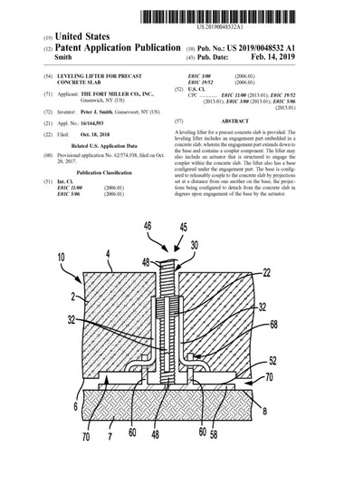 (57) A lifting and leveling assembly configured to be embedded in a precast concrete slab for lifting a leveling a precast concrete slab includes a base plate, a threaded sleeve, an anchor plate, a thread protecting sleeve, a threaded lifting bolt and an end cap. Rotating the threaded lifting bolt in a first direction positions a bolt head on the threaded lifting bolt above a top surface of a precast concrete slab to accommodate the attachment of a lifting device. Rotating the threaded lifting bolt in a second direction positions the bolt...