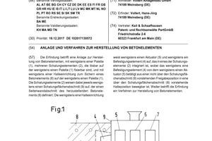 (57) Die Erfindung betrifft eine Anlage zur Herstellung von Betonelementen, mit wenigstens einer Palette (1), mehreren Schalungselementen (2), die lösbar auf der wenigstens einen Palette (1) fixierbar sind, und mit wenigstens einer Halteeinrichtung zum Sichern eines Betonelements (8) auf der wenigstens einen Palette (1). Die Schalungselemente (2) weisen dabei jeweils wenigstens einen Schalungsflächenabschnitt (9) auf, der einen Seitenwandabschnitt des herzustellenden Betonelements (8) definiert. Die wenigstens eine Halteeinrichtung weist wenigstens einen Aktuator (5) und wenigstens ein Befestigungselement (4) auf, das in eines der Schalungselemente (2) integriert ist, wobei das wenigstens eine Befestigungselement (4) von dem wenigstens einen Aktuator (5) betätigt aus einer nicht über den Schalungsflächenabschnitt (9) vorstehenden Freigabeposition in eine über den Schalungsflächenabschnitt (9) vorstehende Halteposition bewegbar ist. Weiter betrifft die Erfindung ein Verfahren zur Herstellung von Betonelementen.