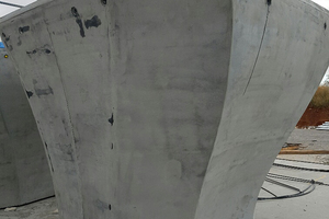 Each mast consists of 30 reinforced concrete elements. The lower 18 sections are produced as semi-circular elements, the upper twelve as complete circular elements.