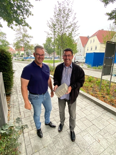 In the production of the climate-friendly block merely gravel, quartz, sand, and water are used – but no cement. Due to the special production technology, up to 75 % less carbon is emitted per square meter at a block thickness of 8 cm – with remaining the same load-bearing capacity and service life and with being visually identical to conventional concrete blocks. The EcoTerra technology allows for the production of blocks in different shapes and thicknesses of 30 x 15 cm up to a size of 100 x 100 cm, for example. Different surface finishes and color shades are also possible.