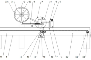 (57) A concrete prefabricated part pouring production line is used for solving the problems that according to a prefabricated part pouring device in the prior art mentioned in the background technology, constructors need to place a mold firstly and then take down the poured mold from the position between baffles, and the filling strength of the constructors is increased by frequently taking the mold; the technical problem that the pouring efficiency of the molds is reduced due to the fact that the molds cannot be poured when the prefabricated part molds are taken and placed in the prior art is solved, and the prefabricated part mold pouring device comprises supporting plates, a first conveying device used for conveying the prefabricated part molds is arranged between the two supporting plates, and a second conveying device used for conveying the molds subjected to filling is arranged between the two supporting plates. A first driving assembly is rotationally arranged on the supporting plate and used for driving the first conveying device, a second driving assembly is arranged on the first driving assembly, a discharging pipe is arranged at a discharging opening of the stirring tank in a communicating mode, and a vibrating rod is arranged on the connecting frame; the supporting frame is provided with a connecting assembly used for controlling discharging of the discharging pipe and controlling the ...