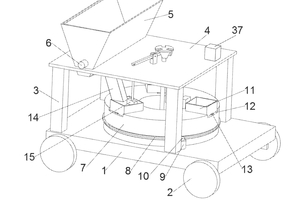 (57) A device for forming high-strength and high-toughness concrete product and a method thereof are provided. The device includes a vehicle body; a rotating disk rotatably connected to the vehicle body, a platform located above the rotating disk, and a vibration assembly. Three placement grooves are evenly spaced on a top surface of the rotating disk, and the placement grooves are used to place forming molds. The platform is fixedly connected to a storage tank, and a bottom of the storage tank is in communication with one of the forming molds in the placement grooves via a pipeline component. The platform is further provided with a thermal pressure forming component, and the platform is further provided with an ejection component. The vibration assembly includes a concrete vibrator and a lifting mechanism.