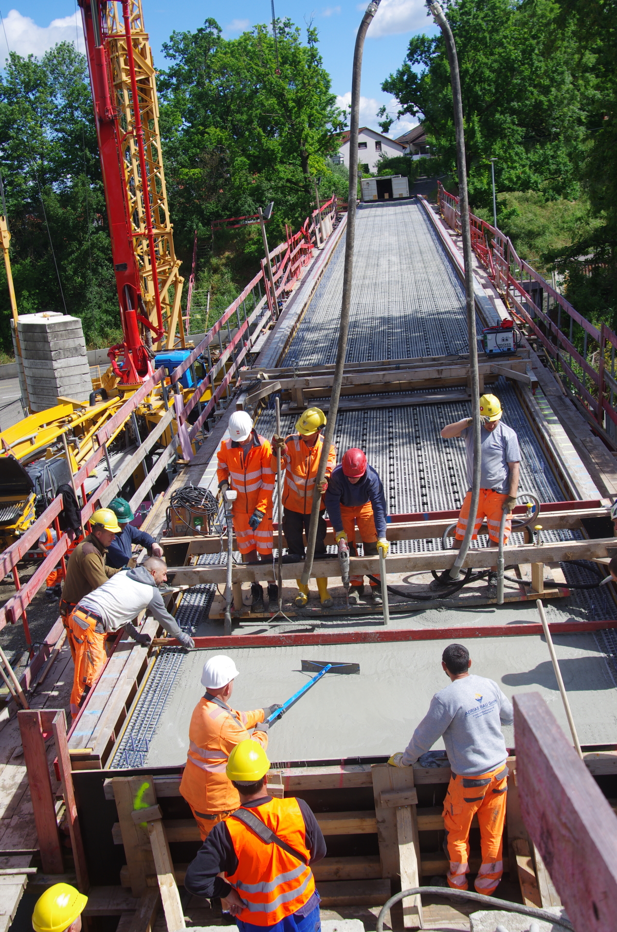 Since no metal reinforcement was used in this bridge construction, the typical risks of reinforcement corrosion are eliminated. This means lower maintenance and renovation costs over the entire service life of the bridge compared to conventional constructions.