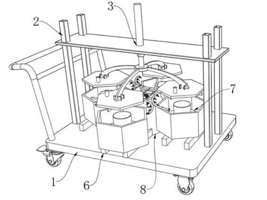 (57) The invention relates to the technical field of building material production equipment, and one embodiment of the invention provides an ultra-high performance concrete prefabricated part pouring mold which comprises a first side plate; the second side plates and the first side plates are arranged in an included angle mode, the second side plates are arranged on the first side plates in a sliding mode, the first side plates and the second side plates are symmetrically arranged in pairs, and a forming space is formed between the two first side plates and the two second side plates; the forming bottom plate is arranged in the forming space in a lifting and sliding manner; and the first pushing and pressing piece is arranged on the second side plate in a lifting and sliding mode, the first pushing and pressing piece is arranged in a horizontal moving mode relative to the forming bottom plate, and the first pushing and pressing piece is configured to provide extrusion force of the second side plate towards the forming space after horizontal movement. By means of the technical scheme, the technical problem that a penetrating type connecting piece used by a forming mold of a concrete prefabricated ...