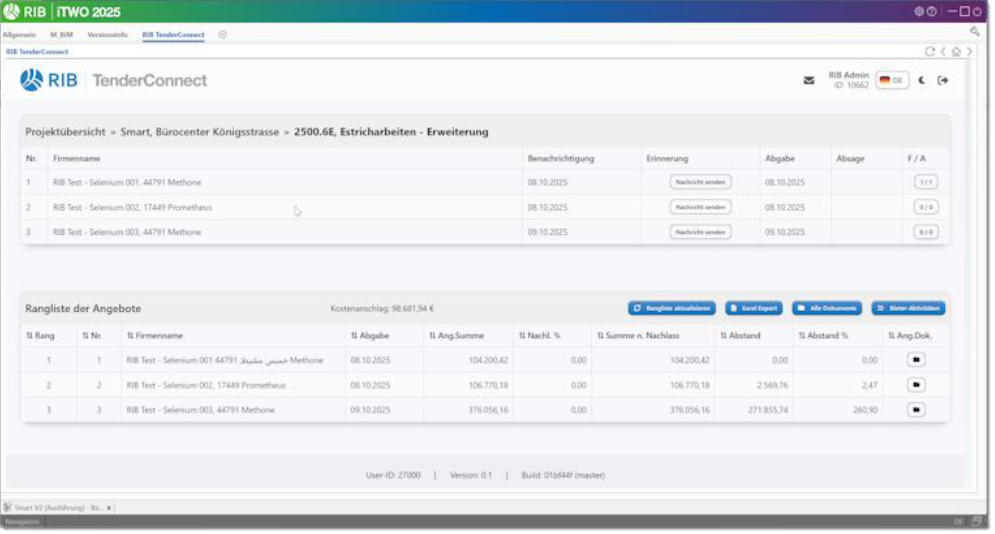 With RIB TenderConnect, the software manufacturer is laying the foundation for end-to-end processes along the construction value chain. The integration enables seamless integration of the tender process with one of the largest subcontractor networks in the DACH region, with more than 160,000 subcontractors. According to RIB, the familiar interfaces can be used to publish tender units, including service specifications, deadlines, and attachments, with a single click and to obtain quotes/price inquiries digitally. The responses flow back into the price comparison list without media discontinuity, in a process that is fully GAEB*-compliant.