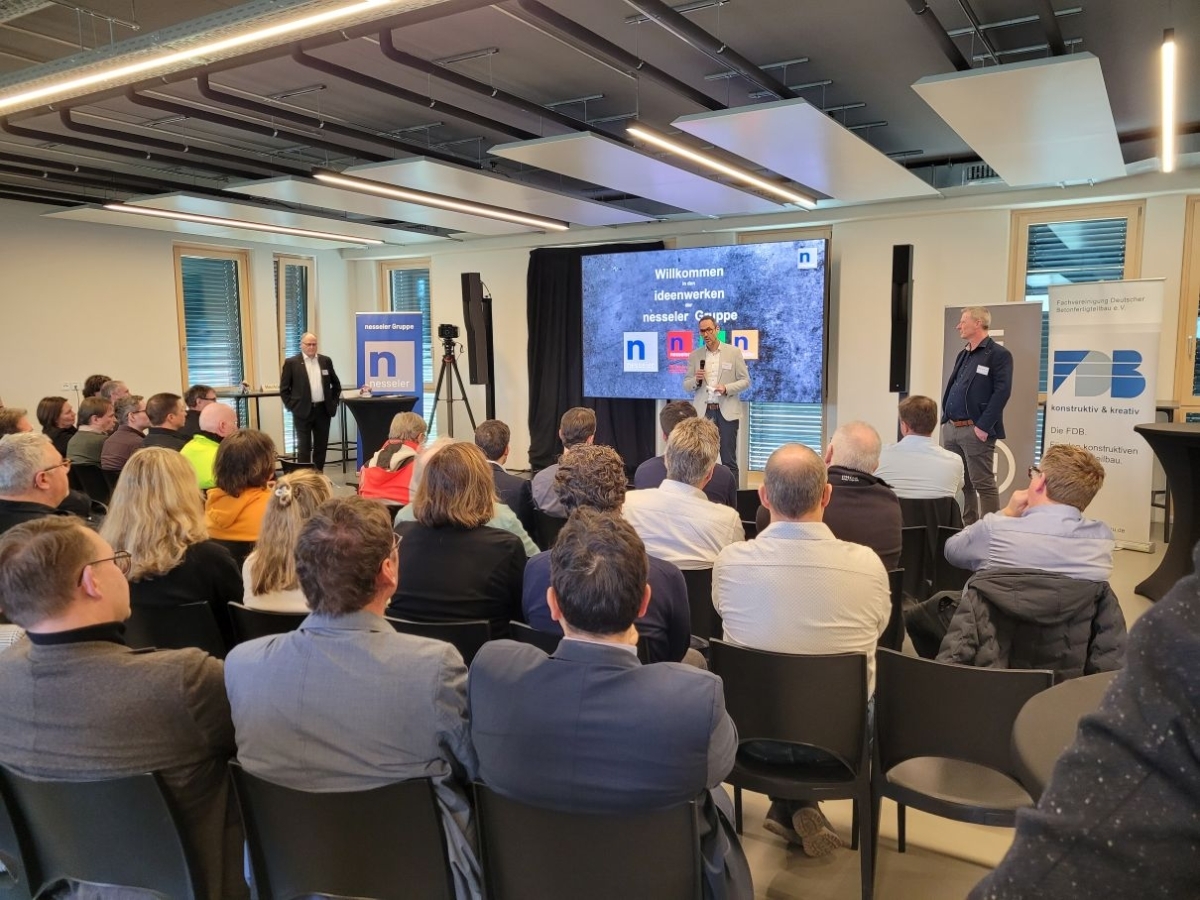 The hosts, nesseler ideenwerke, the Fachvereinigung Deutscher Betonfertigteilbau e.V. (FDB) and the InformationsZentrum Beton (IZB), were delighted with the great response to the event, which concluded with a get-together where participants had the opportunity to engage in intensive professional exchange in a pleasant atmosphere.